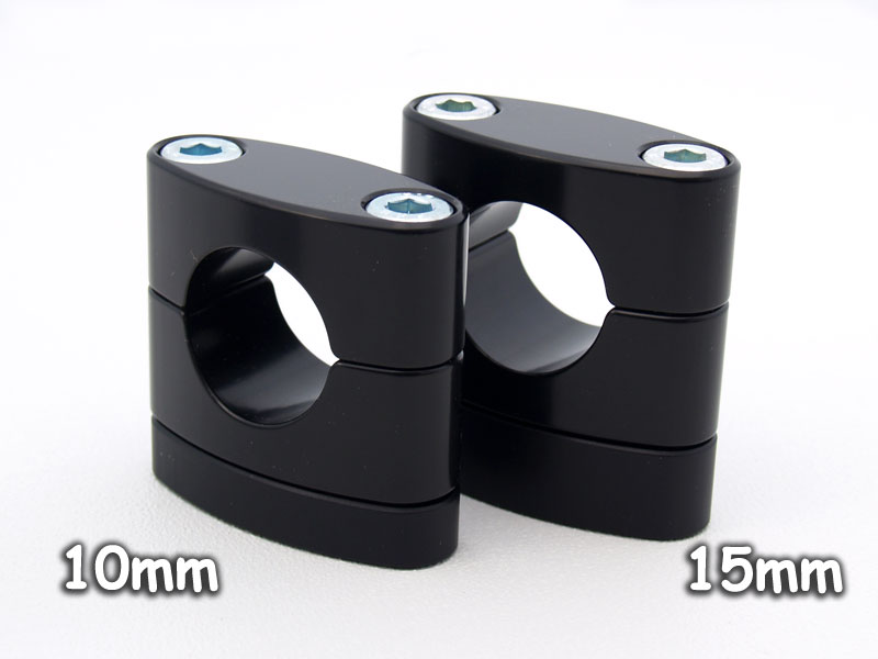 To give you maximum flexibility in your bar position we offer 10mm and 15mm risers to raise the mounting position of the standard mounts. The risers come complete with new longer hardware.