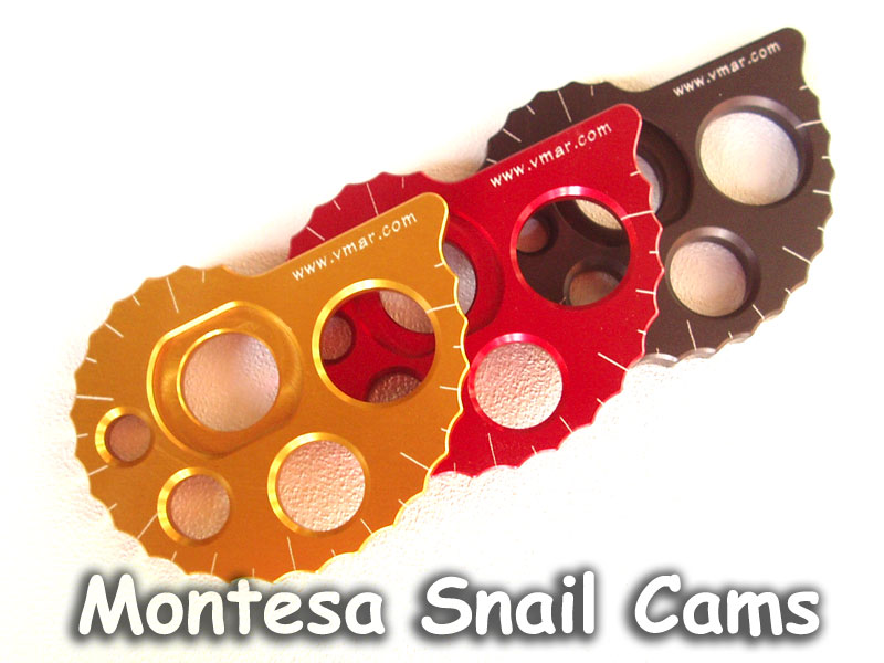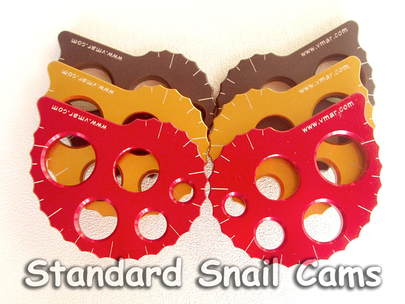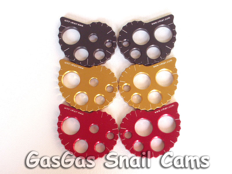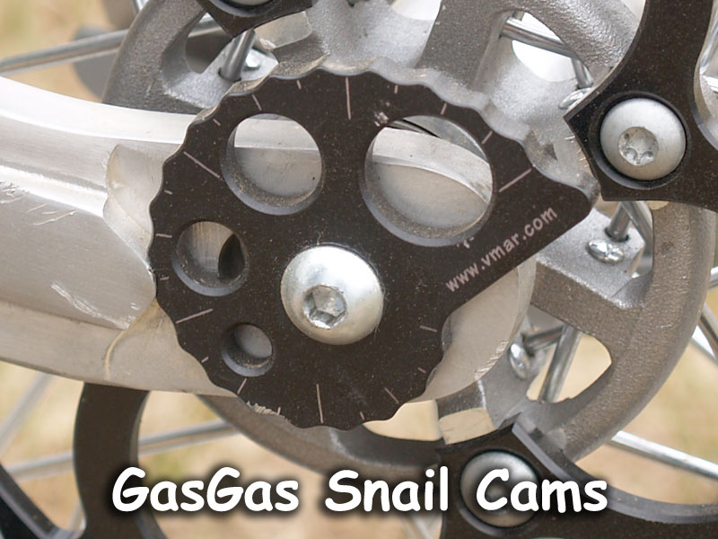 We have been working on special snails for many different applications. We now offer our heavy duty snail cams for twin shock bikes that utilize a 15mm axle. We have snails with a 2mm recess to fit the Scorpa along with our ever popular Montesa, GasGas and standard snails. So whatever you ride, we have a set of snails for you.